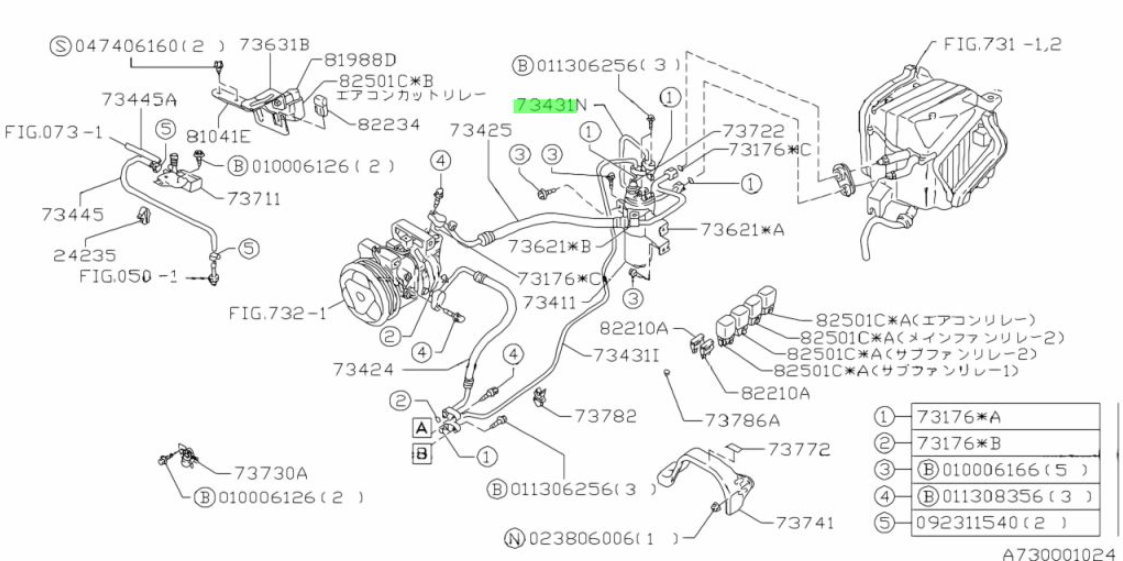Subaru Impreza 92-00 GC8 GF8 GM8 A/C Pipe Liquid/Tank Evaporator 73431FA180